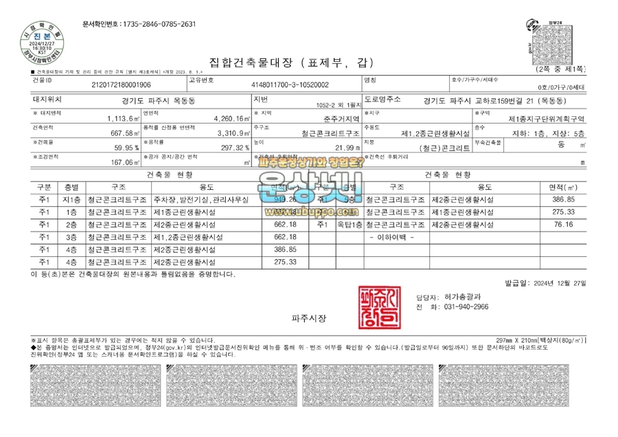 \u25a3 건축물대장 정보 확인하기