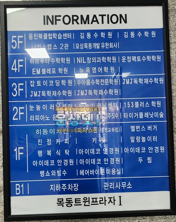 2층 : 눈높이 러닝센터. 153플러스 학원. 라피아노 음악학원. 타이거플레닛마술 등