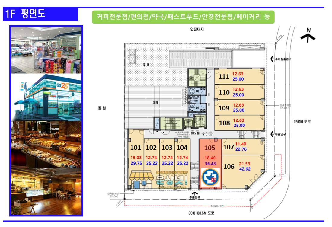 1층 : 김밥연가, 항아리, 베스킨라빈스, 컴포즈커 등