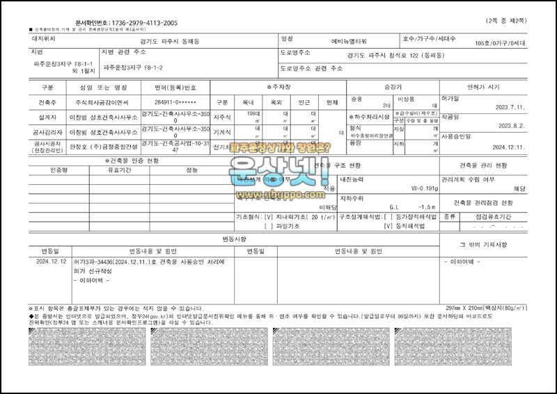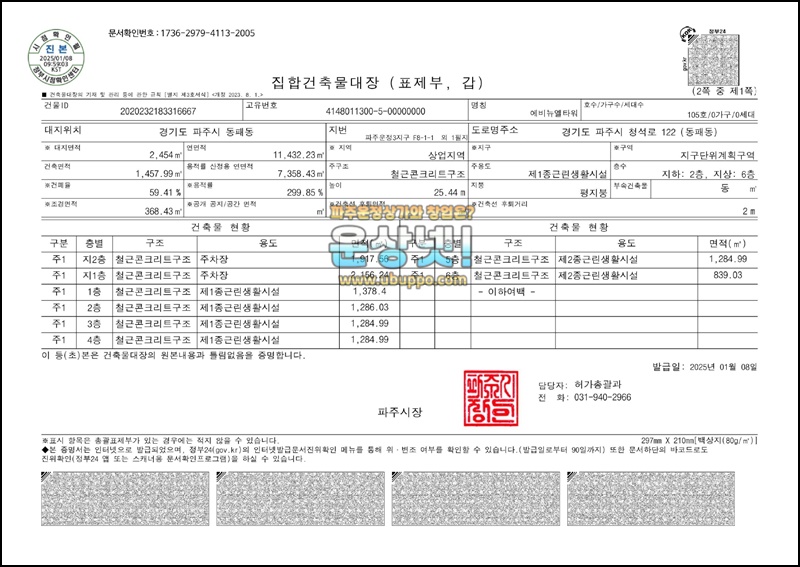 운정 에비뉴엘타워 건축물대장