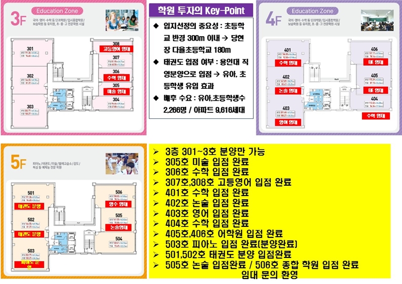 -> 수학교습소. 미술교습소. 태권도학원. 음악학원 등 학원업으로 채워지고 있어요~