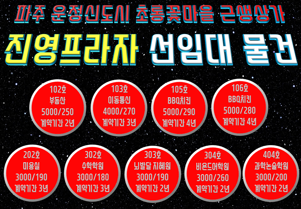 파주 운정신도시 초롱꽃마을 근생상가 진영프라자 (월세 바로 받을 수 있는 상가)