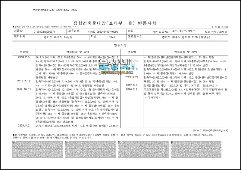 enlightened월드타워7차 건축물대장enlightened