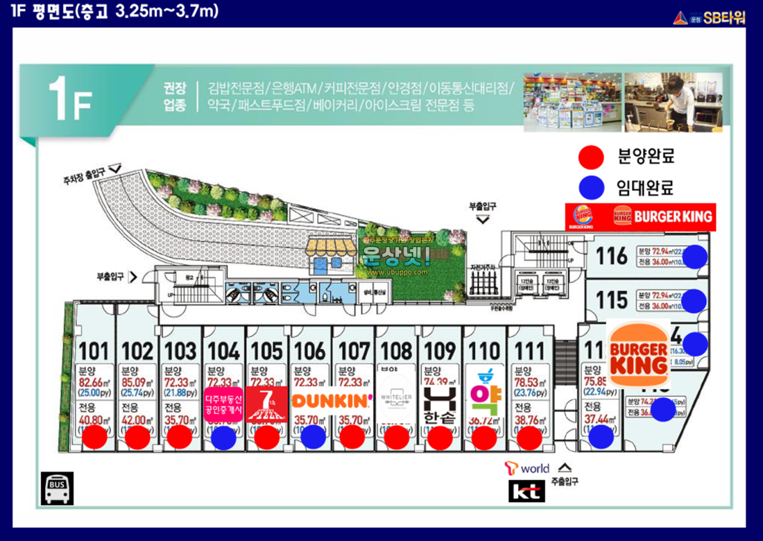 SB타워 초롱꽃마을 사거리대로변 코너상가로 접근성 가시성 광고효과 매우 뛰어난 건물