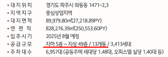 공급규모 : 지하5층~지상49층 13개동. 3,413세대